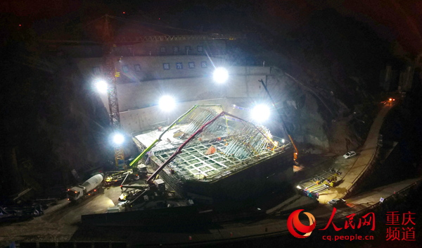 一项重点工序的高效完成,背后往往有着许多难以想象的施工细节。张俭成介绍说,在8354方混凝土的浇筑过程中,意味着要花费1938吨水泥、15997吨砂石料等原材料,需要30名工程技术人员和117名产业工人,分成2个班次协同、流水作业。同时需要装载机、拌合站在有序、不间断运转近118小时,还需要7台运输车在拌合站与作业点之间往返多少120个来回,夜以继日奔跑626公里,为作业面持续运送混凝土。这还不包括前期完成绑扎的“钢筋丛林”和安装调试好模板组合等一系列辅助性工作。假设在地面将8354方混凝土简单堆积,相当于整体浇筑一栋6层高、两个单元的普通居民楼房。